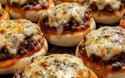 Mini Pizza Burger 🍔🍕 Mini Pizza Burgers to idealny comfort food: soczyste burgery polane bogatym sosem do pizzy, roztopionym serem…