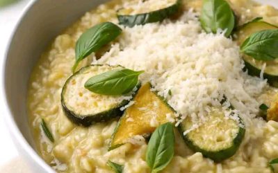 Kremowe risotto z cukinii z bazylią i parmezanem Klasyczne włoskie danie, odświeżone w świeżej i lekkiej odsłonie. To risotto to…