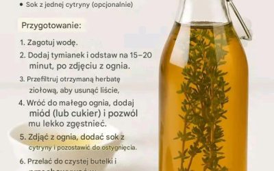 Składniki: • 1 duża garść świeżego tymianku (lub 3 łyżki suszonego) • 500 ml wody • 250 g miodu (lub…