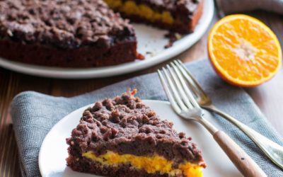 Ciasto pomarańczowe z kruszonką i miękkim, gorzkim czekoladowym środkiem Składniki: Na spód i kruszonkę: 300 g mąki 00 100 g…