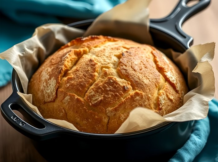 Składniki do przygotowania domowego chleba pieczonego w rondlu