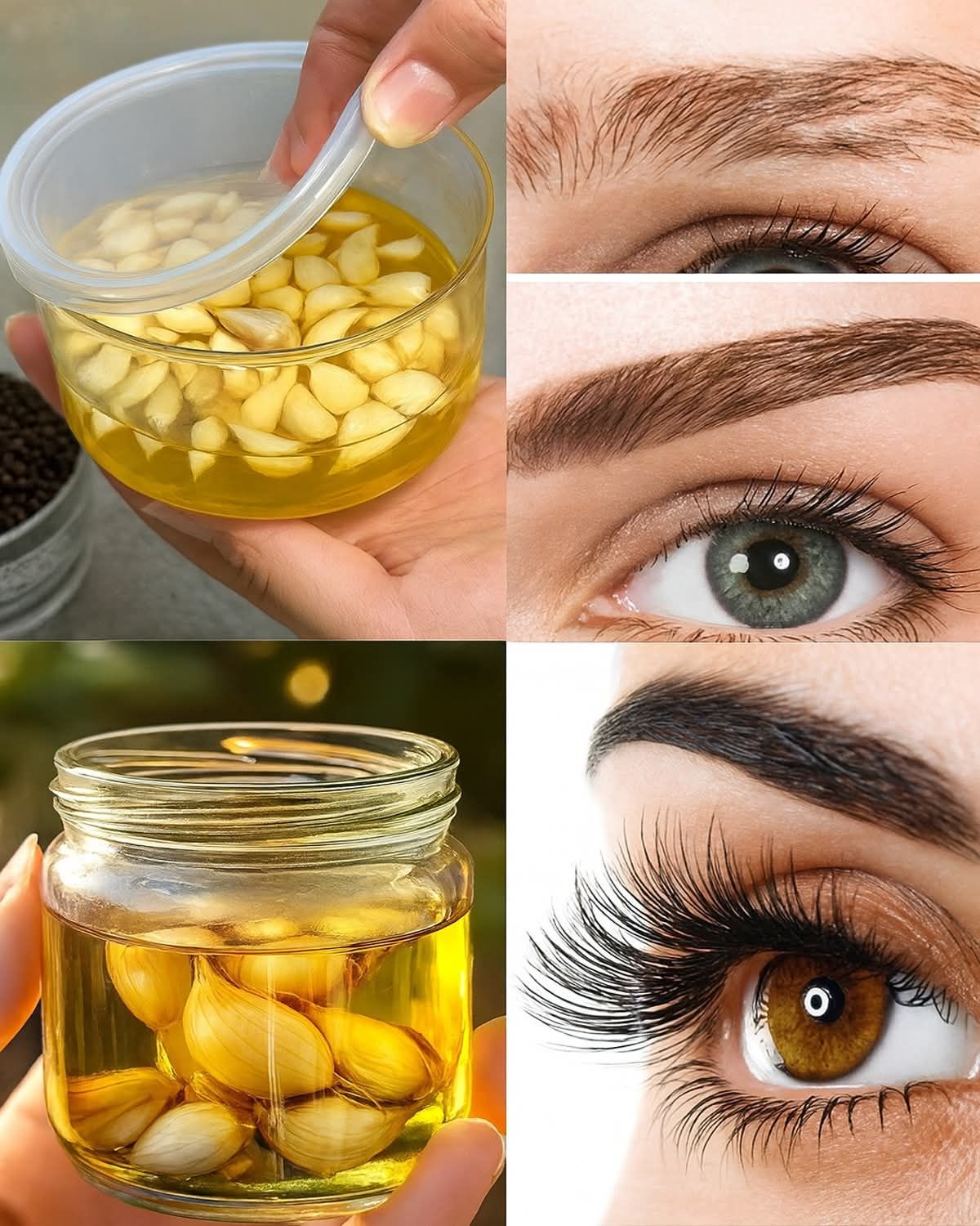 Czosnek: Bogaty w siarkę, selen i witaminy, czosnek pobudza krążenie i wzmacnia mieszki włosowe. Jego właściwości antybakteryjne pomagają również utrzymać zdrową skórę wokół brwi i rzęs.