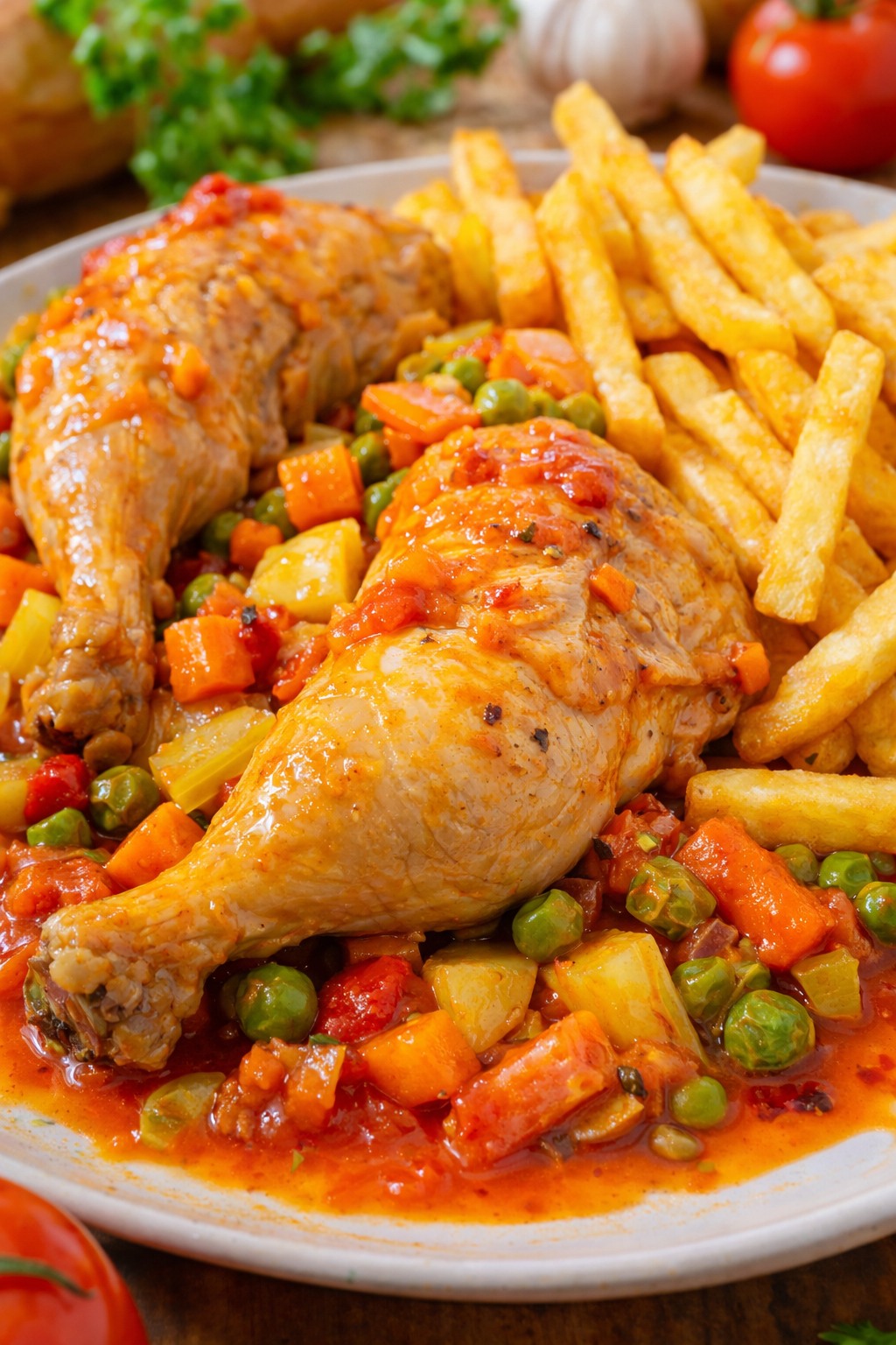 Składniki do przygotowania gulaszu z kurczaka z warzywami ogrodowymi