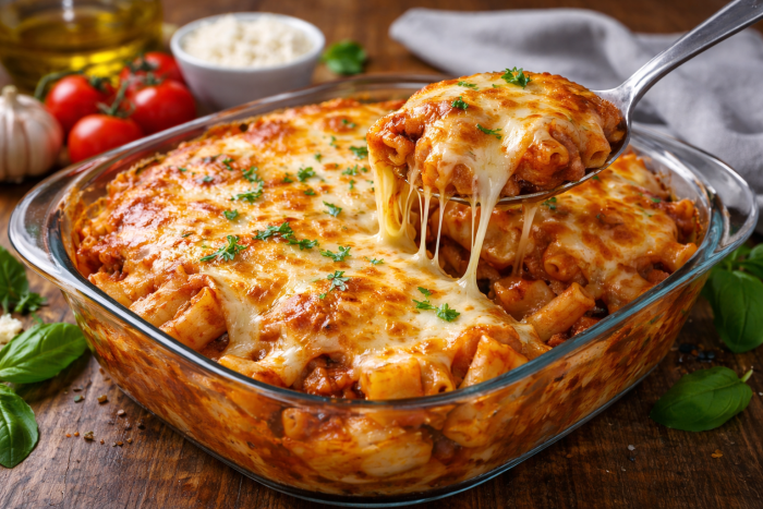 Składniki do przygotowania zapiekanki makaronowej z sosem beszamelowym
