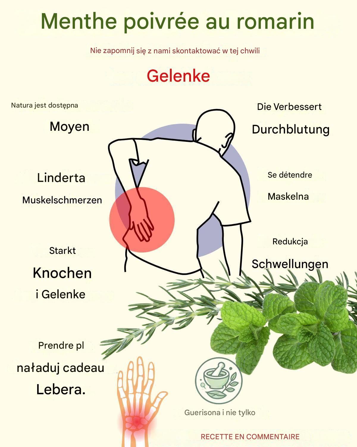 Naturopatia na nowo odkryła rośliny lecznicze jako cenne źródło dobrego samopoczucia, szczególnie w leczeniu schorzeń stawów. Jednym z najbardziej polecanych połączeń jest napar z mięty pieprzowej i rozmarynu – dwóch roślin, których połączenie wzmacnia ich właściwości przeciwzapalne, przeciwbólowe i regeneracyjne. Ta mieszanka jest szczególnie korzystna dla osób cierpiących na zużycie chrząstki w kolanie i biodrze, częste schorzenie wśród osób starszych, a także dla osób z artretyzmem, chorobą zwyrodnieniową stawów lub urazami stawów.