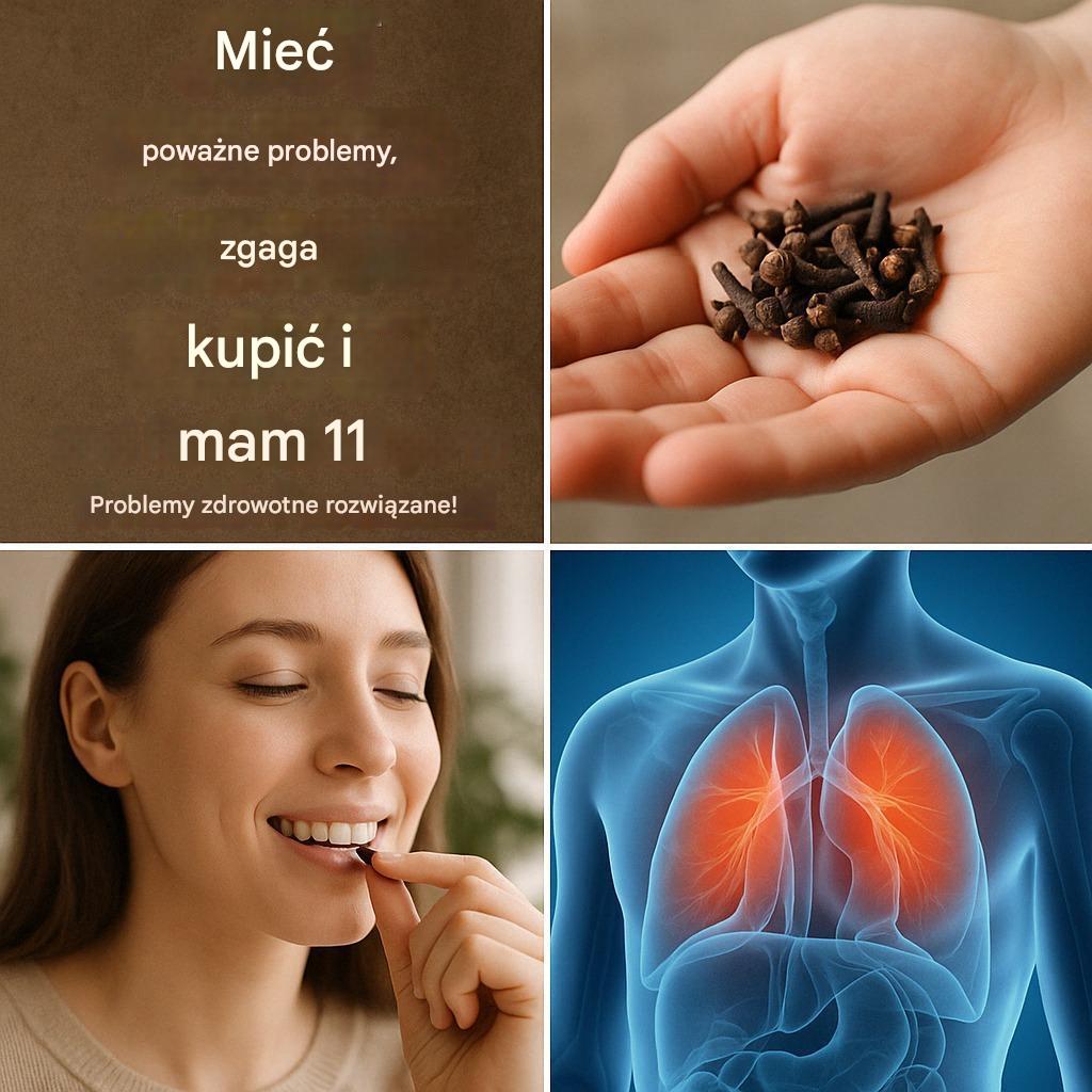Goździki znane są z zawartości eugenolu, który ma właściwości antyseptyczne i skutecznie łagodzi ból zębów, dziąseł i infekcje jamy ustnej. Żucie goździków może pomóc w redukcji bakterii w jamie ustnej i odświeżeniu oddechu.
