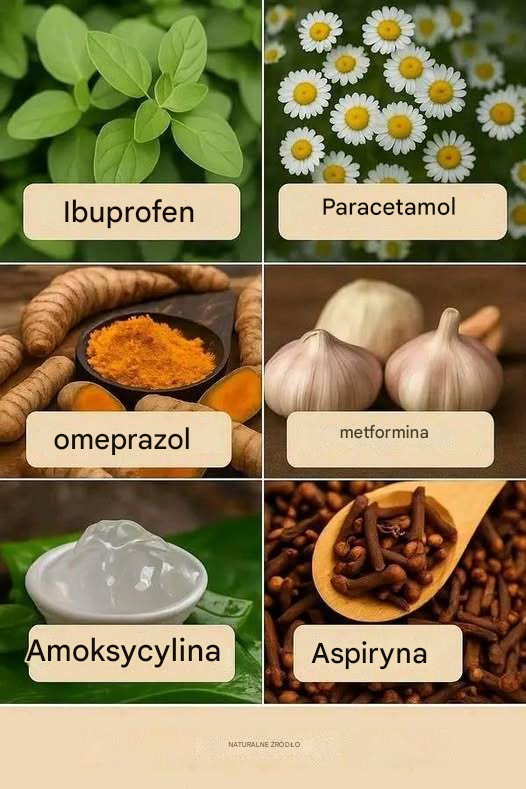Ibuprofen i mięta: Ibuprofen jest jednym z najczęściej stosowanych leków przeciwzapalnych łagodzących ból i stany zapalne. Zioła takie jak mięta zawierają związki, które pomagają rozluźnić mięśnie i zmniejszyć stan zapalny, a także działają chłodząco i kojąco. Mięta może być stosowana jako napar lub spray z olejkiem eterycznym, aby złagodzić bóle głowy, bóle mięśni i drobne bóle, stanowiąc cenną, naturalną alternatywę.