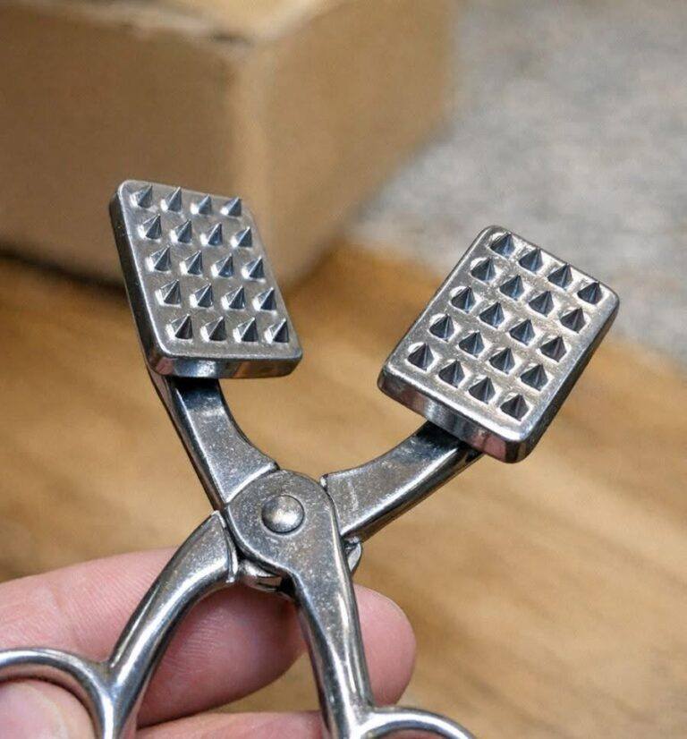 Masywny wygląd żelaznych płytek w połączeniu z precyzją mechaniczną instrumentu sprawiał wrażenie, jakby należał on do zestawu chirurgicznego, a nie do kuchennej szuflady. Kleszcze medyczne często pełnią podobne funkcje, takie jak mechanizmy chwytające i końcówki do przytrzymywania lub manipulowania tkankami podczas zabiegów.