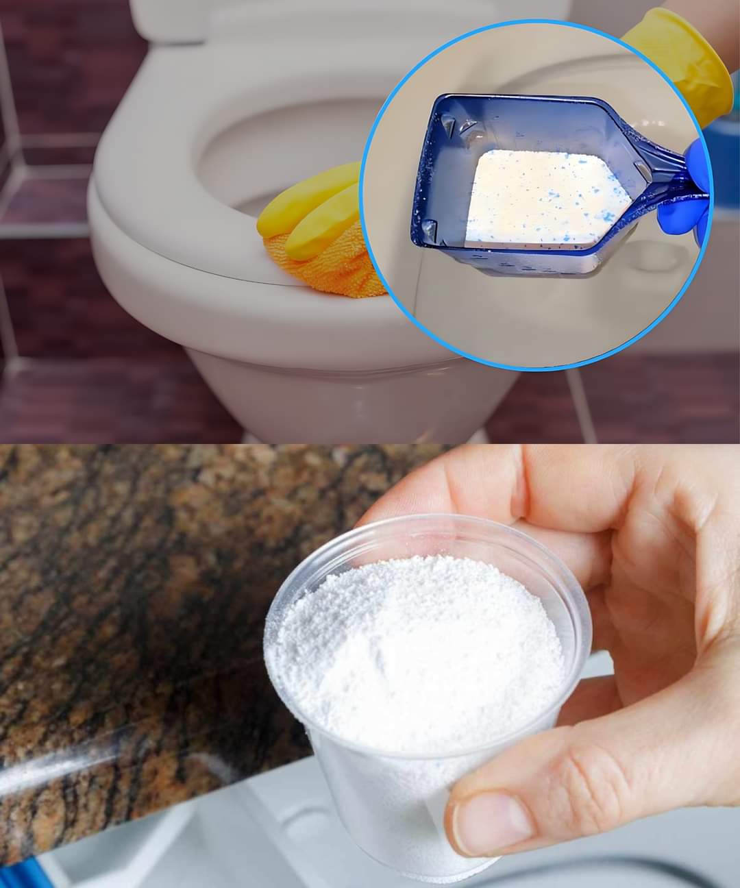detergentu: Wsypać jedną miarkę proszku do czyszczenia toalety do muszli klozetowej.