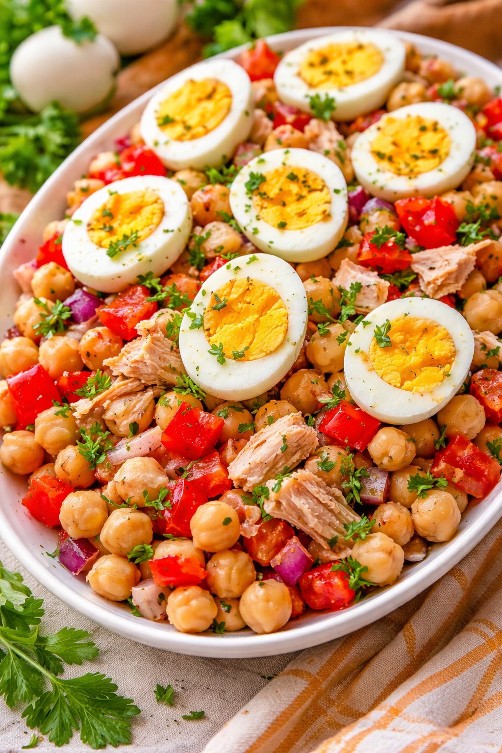 Jak przygotować sałatkę z ciecierzycy, tuńczyka i jajka