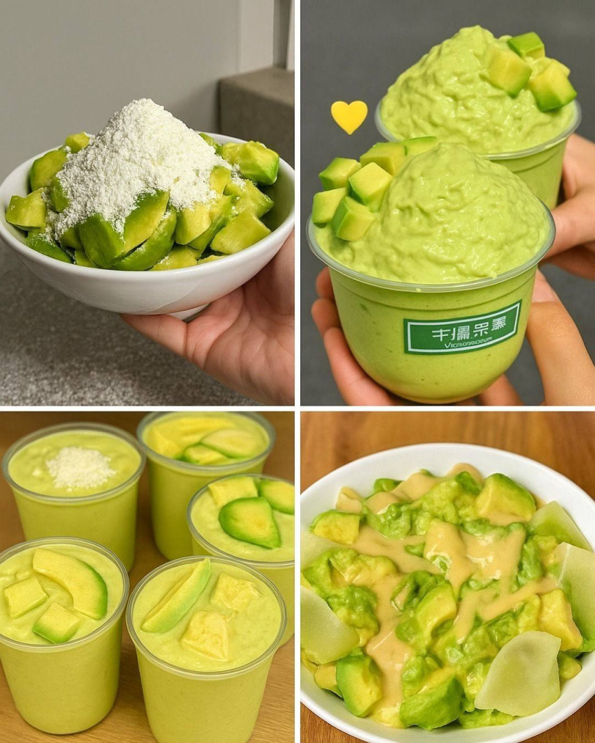 Dodatki do wyboru: mleko kokosowe, galaretka z trawy, perełki tapioki, kostki awokado, durian (opcjonalnie).