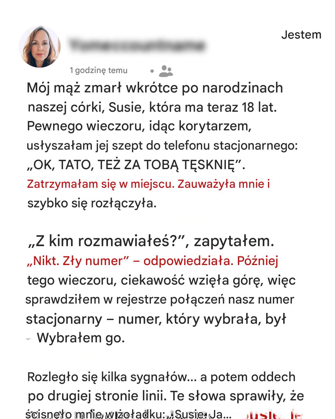 Mój mąż zmarł, gdy nasza córka, Susie, miała zaledwie dwa tygodnie.