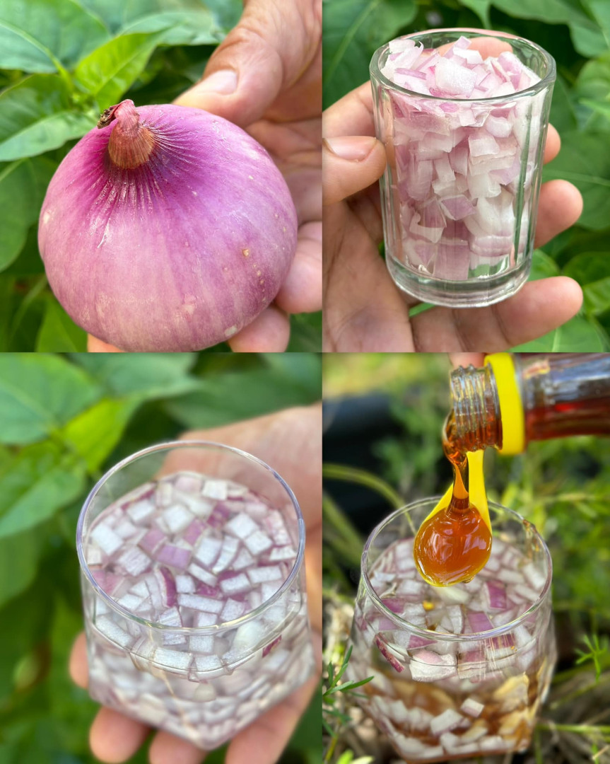 Dodaj posiekaną czerwoną cebulę do szklanki ciepłej wody i pozwól jej naturalnie się zaparzyć.