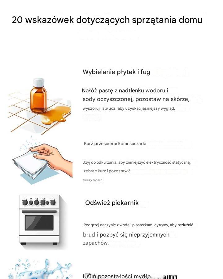 Utrzymanie czystości i porządku w domu może czasem wydawać się niekończącym się zadaniem. Jednak dzięki odpowiednim wskazówkom sprzątanie może być bardziej efektywne i jeszcze przyjemniejsze. Te wskazówki wykorzystują popularne produkty gospodarstwa domowego, aby usunąć brud, kurz i nieprzyjemne zapachy, oszczędzając czas i pieniądze. Niezależnie
